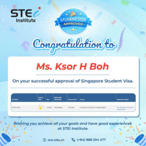 Vượt qua những băn khoăn ban đầu, bạn H Boh đã xuất sắc sở hữu tấm vé Visa du học Singapore để theo đuổi đam mê ngành Quản trị Nhà hàng – Khách sạn tại Học viện STEi, Singapore. Chúc H Boh sẽ có một hành trình du học thật ý nghĩa, gặt hái được nhiều thành tích rực rỡ tại môi trường quốc tế nhé!